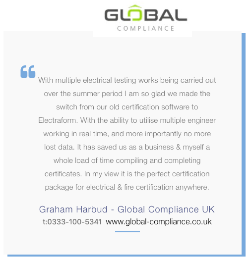 electraform is designed, coded and managed by experienced electricians - understanding the industry and what electricians need makes electraform the most user friendly certification software available and the reason our users are so complimentary.